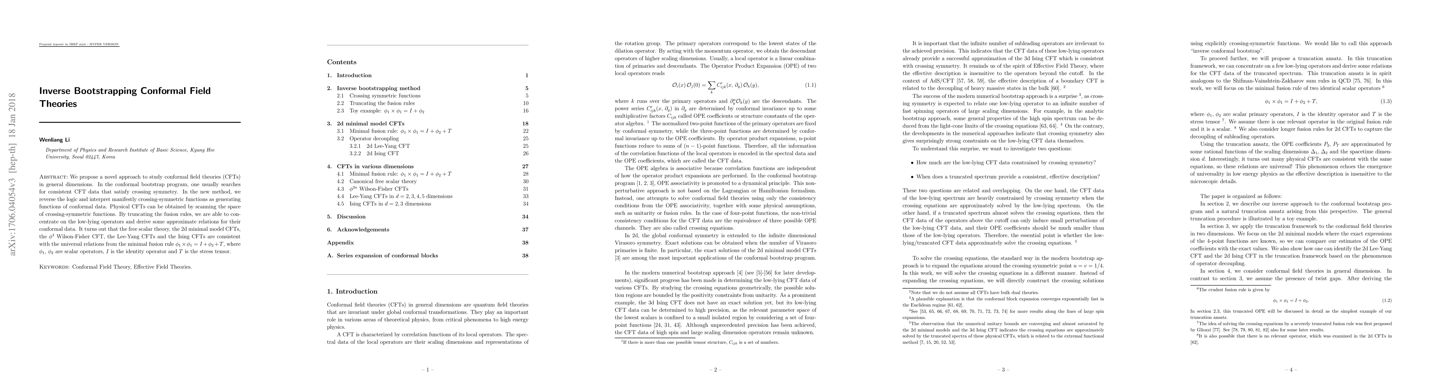 We propose a novel approach to study conformal field theories (CFTs) in general dimensions. In the conformal bootstrap program, one usually searches for consistent CFT data that satisfy crossing symmetry. In the new approach, we reverse the logic and interpret manifestly crossing-symmetric functions as generating functions of conformal data. Physical CFTs can be obtained by scanning the space of symmetric functions. By truncating the fusion rules, we are able to concentrate on the low-lying operators and derive some approximate relations for their conformal data. It turns out that the free scalar theory, the 2d minimal model CFTs, the $\phi^{4}$ Wilson-Fisher CFT, the Lee-Yang CFTs and the Ising CFTs are consistent with the universal relations from the minimal fusion rule $\phi_1\times \phi_1=I+\phi_2+T$, where $\phi_1,\,\phi_2$ are scalar operators, $I$ is the identity operator and $T$ is the stress tensor.