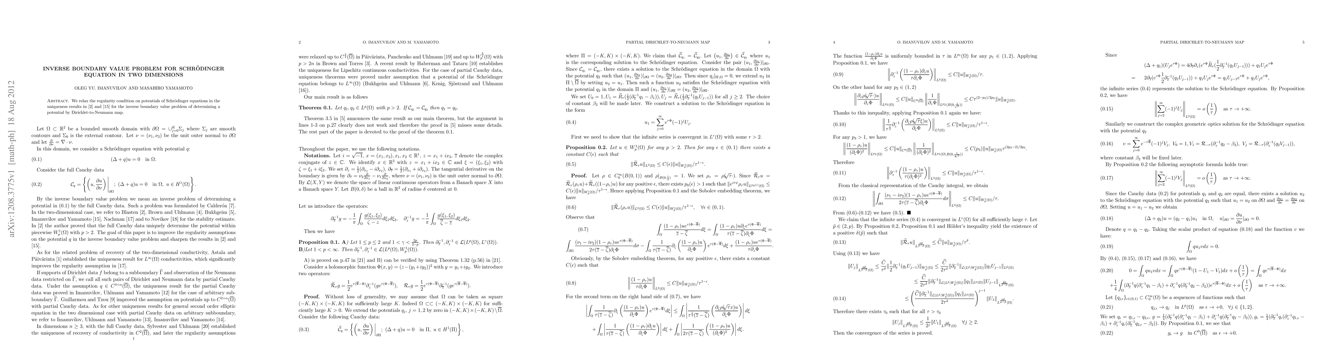 Summary: This paper relaxes the regularity condition on potentials in the inverse boundary value problem for two-dimensional linear Schrödinger equations, improving the uniqueness results previously established in \cite{EB} and \cite{IY2} by determining potentials from the Dirichlet-to-Neumann map.
