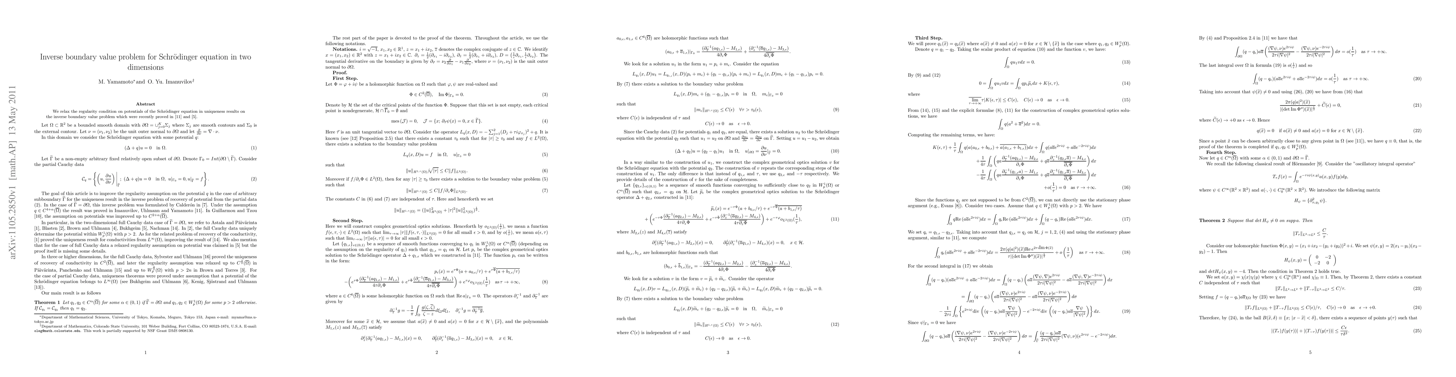 Summary: This paper relaxes the regularity condition on potentials in the Schrödinger equation to enhance the uniqueness results of the inverse boundary value problem, extending findings from previous studies.
