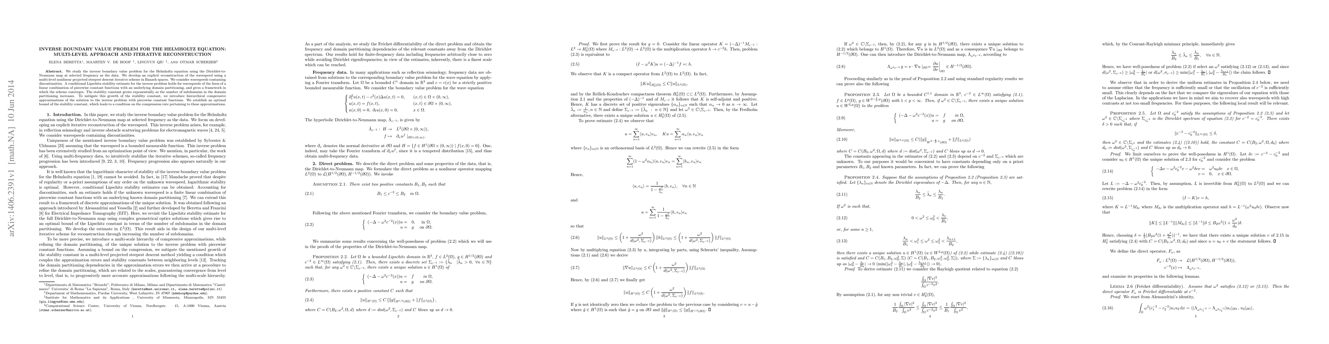 This paper develops a multi-level iterative scheme for reconstructing wavespeeds in the Helmholtz equation's inverse boundary value problem, addressing discontinuities and ensuring conditional Lipschitz stability. To manage the exponential growth of stability constants, it introduces hierarchical compressive approximations, establishing an optimal stability bound and a condition on compression rates.