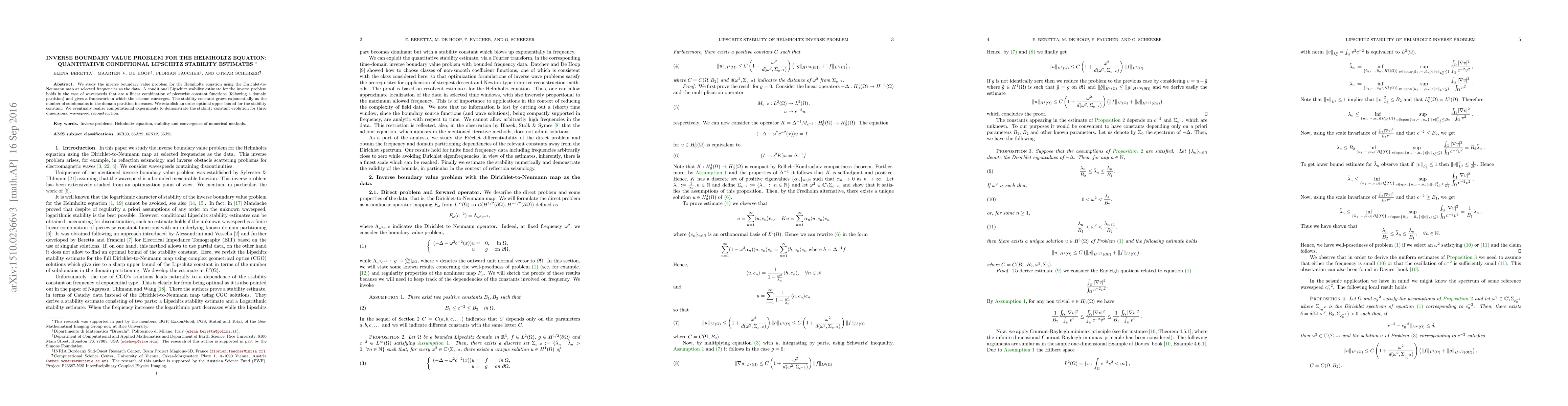 This paper investigates the inverse boundary value problem for the Helmholtz equation, providing conditional Lipschitz stability estimates for wavespeeds modeled as linear combinations of piecewise constant functions. The study establishes an optimal upper bound for the stability constant, which grows exponentially with the number of subdomains, and supports findings with computational experiments for three-dimensional wavespeed reconstruction.