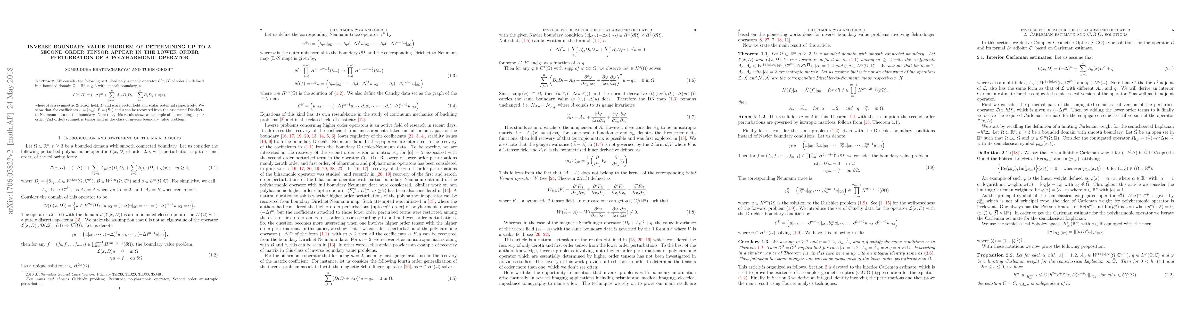 Researchers solved an inverse boundary value problem to recover up to second-order tensors from Dirichlet-to-Neumann data on the boundary of a domain, showing a method for determining higher-order tensor fields.