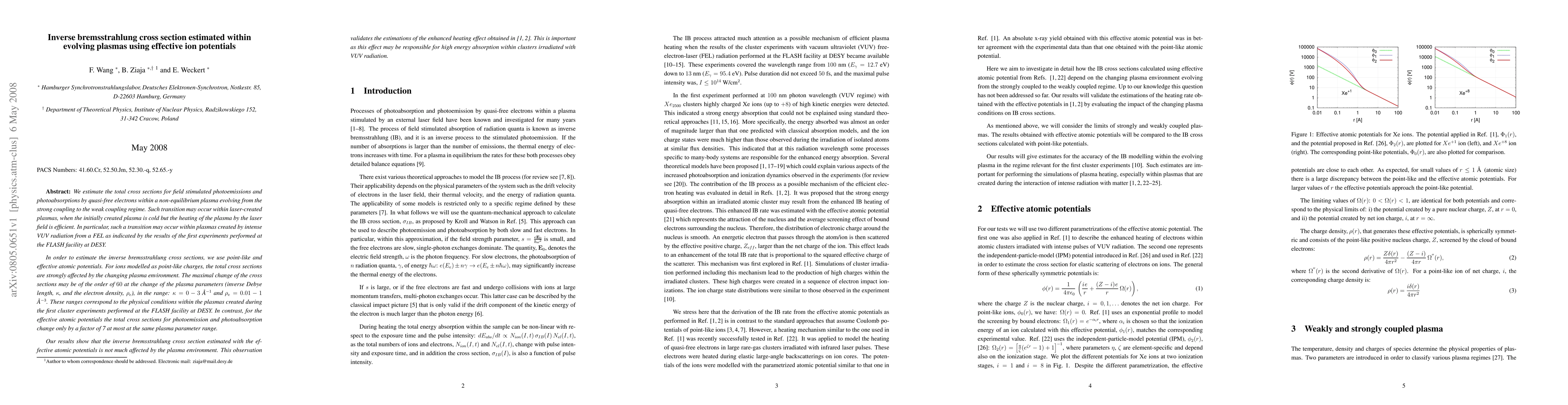 In this paper we estimate the total cross sections for field stimulated photoemissions and photoabsorptions by quasi-free electrons within a non-equilibrium plasma evolving from the strong coupling to the weak coupling regime. Such transition may occur within laser-created plasmas, when the initially created plasma is cold but the heating of the plasma by the laser field is efficient. In particular, such a transition may occur within plasmas created by intense VUV radiation from a FEL as indicated by the results of the first experiments performed at the FLASH facility at DESY. In order to estimate the inverse bremsstrahlung cross sections, we use point-like and effective atomic potentials. For ions modelled as point-like charges, the total cross sections are strongly affected by the changing plasma environment. The maximal change of the cross sections may be of the order of 60 at the change of the plasma parameters (inverse Debye length, kappa, and the electron density, rho_e), in the range: kappa=0-3 A^{-1} and \rho_e=0.01-1 A^{-1}. These ranges correspond to the physical conditions within the plasmas created during the first cluster experiments performed at the FLASH facility at DESY. In contrast, for the effective atomic potentials the total cross sections for photoemission and photoabsorption change only by a factor of 7 at most at the same plasma parameter range. Our results show that the inverse bremsstrahlung cross section estimated with the effective atomic potentials is not much affected by the plasma environment. This observation validates the previous estimations of the enhanced heating effect. This is important as this effect may be responsible for high energy absorption within clusters irradiated with VUV radiation.