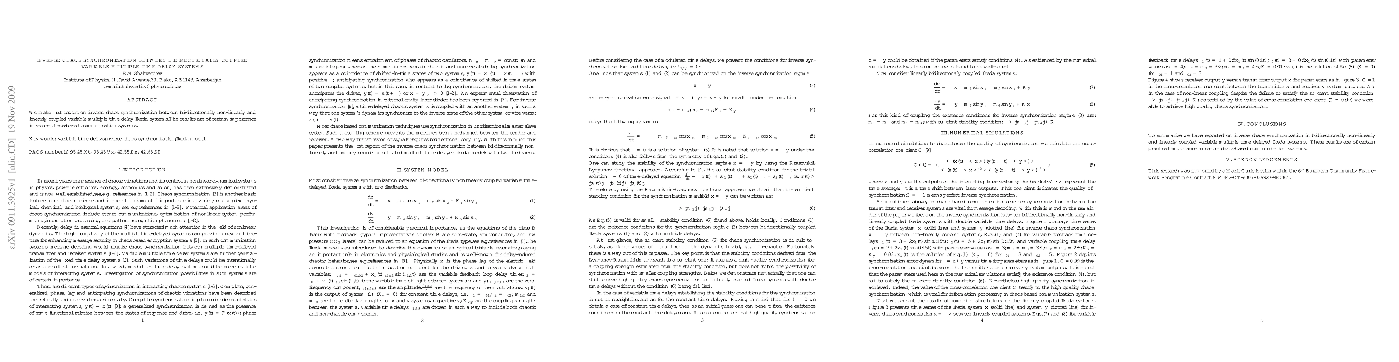 This paper reports on inverse chaos synchronization in bidirectionally coupled variable multiple time delay Ikeda systems, highlighting its potential significance for secure chaos-based communication systems. The findings provide new insights into the dynamics of such complex systems.
