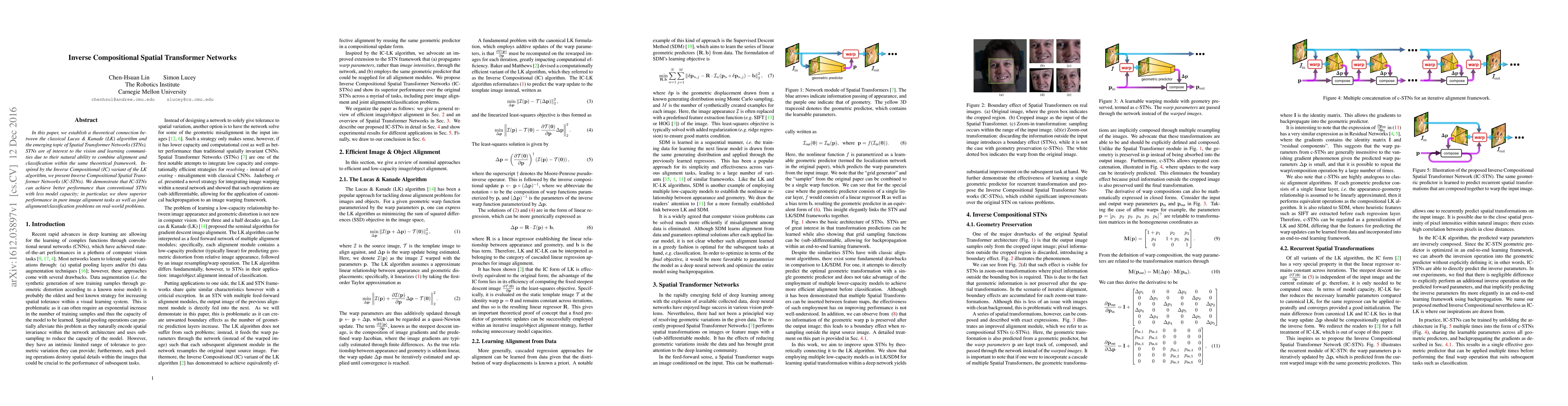 In this paper, we establish a theoretical connection between the classical Lucas & Kanade (LK) algorithm and the emerging topic of Spatial Transformer Networks (STNs). STNs are of interest to the vision and learning communities due to their natural ability to combine alignment and classification within the same theoretical framework. Inspired by the Inverse Compositional (IC) variant of the LK algorithm, we present Inverse Compositional Spatial Transformer Networks (IC-STNs). We demonstrate that IC-STNs can achieve better performance than conventional STNs with less model capacity; in particular, we show superior performance in pure image alignment tasks as well as joint alignment/classification problems on real-world problems.