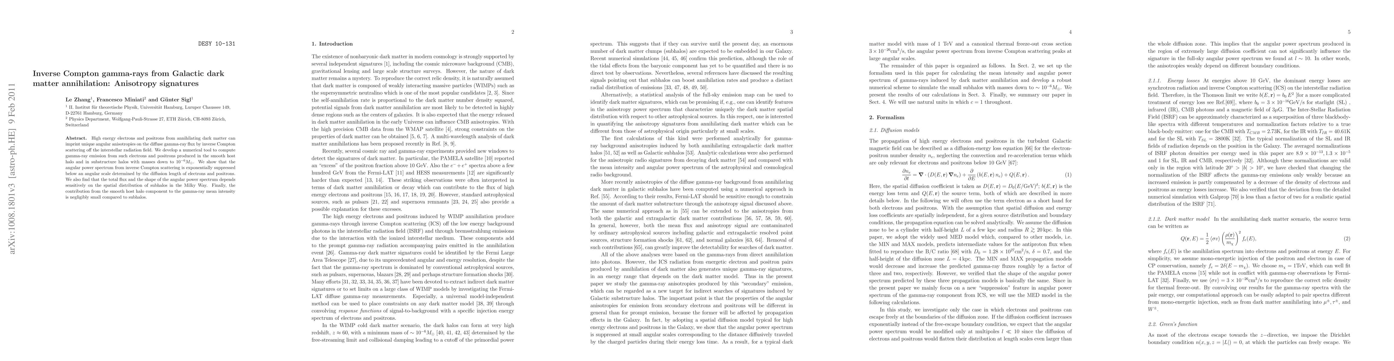High energy electrons and positrons from annihilating dark matter can imprint unique angular anisotropies on the diffuse gamma-ray flux by inverse Compton scattering off the interstellar radiation field. We develop a numerical tool to compute gamma-ray emission from such electrons and positrons produced in the smooth host halo and in substructure halos with masses down to 10^(-6)M_sun. We show that the angular power spectrum from inverse Compton scattering is exponentially suppressed below an angular scale determined by the diffusion length of electrons and positrons. We also find that the total flux and the shape of the angular power spectrum depends sensitively on the spatial distribution of subhalos in the Milky Way. Finally, the contribution from the smooth host halo component to the gamma-ray mean intensity is negligibly small compared to subhalos.