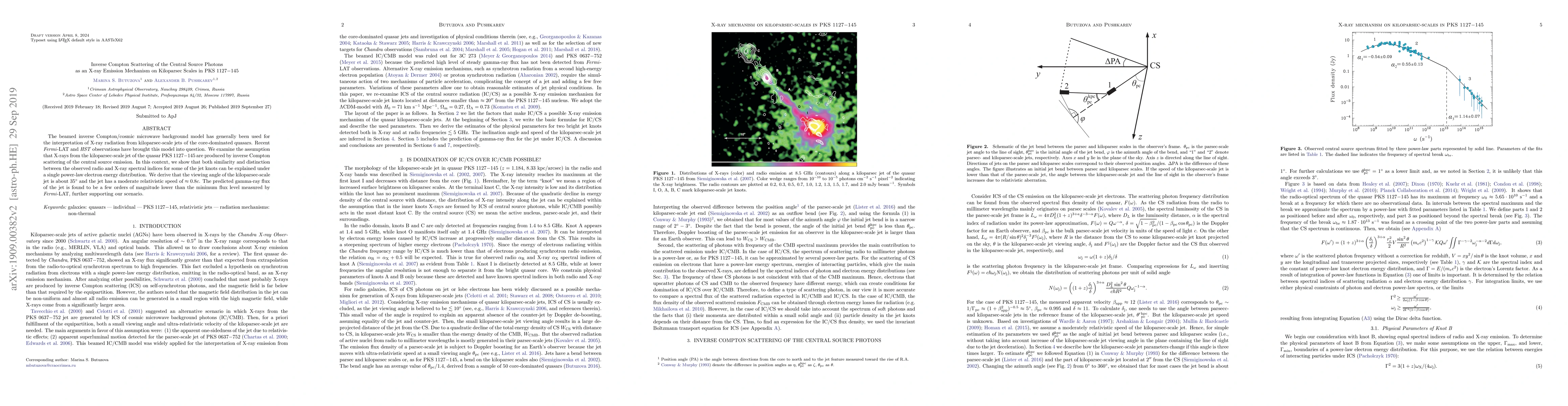 This study investigates the inverse Compton scattering of central source photons as an X-ray emission mechanism in the kiloparsec-scale jet of quasar PKS 1127-145, finding that the observed radio and X-ray spectral indices can be explained by a single power-law electron energy distribution. The analysis suggests a viewing angle of about $35^\circ$ and a moderate relativistic speed of $\approx 0.8c$.