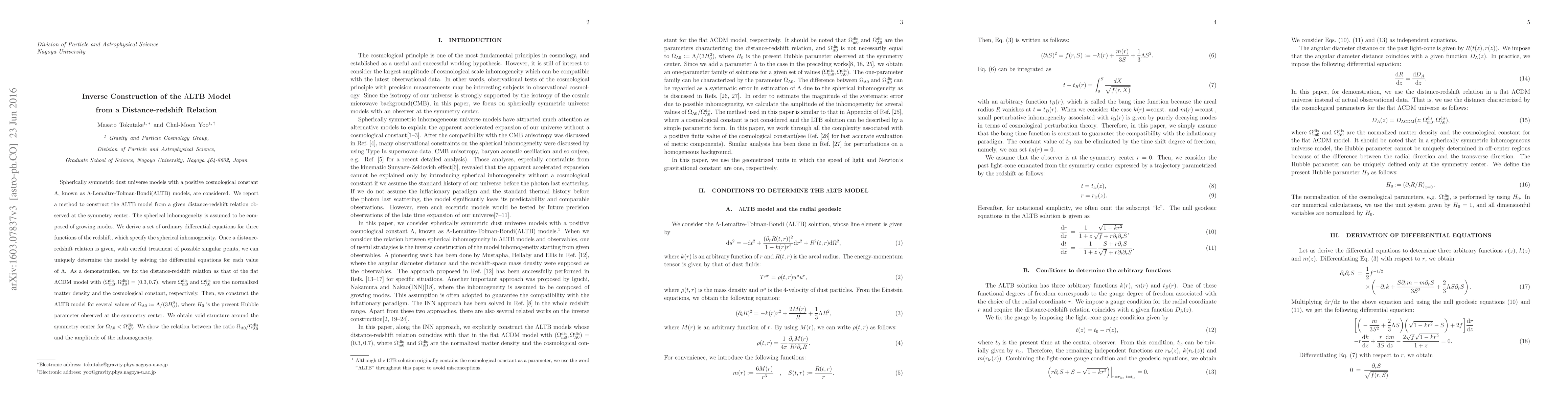 Researchers develop a method to construct the $eta$-Lema exttiron-Bondi($eta$LTB) model from a given distance-redshift relation, finding that it produces void structure around the symmetry center for certain values of $eta$.