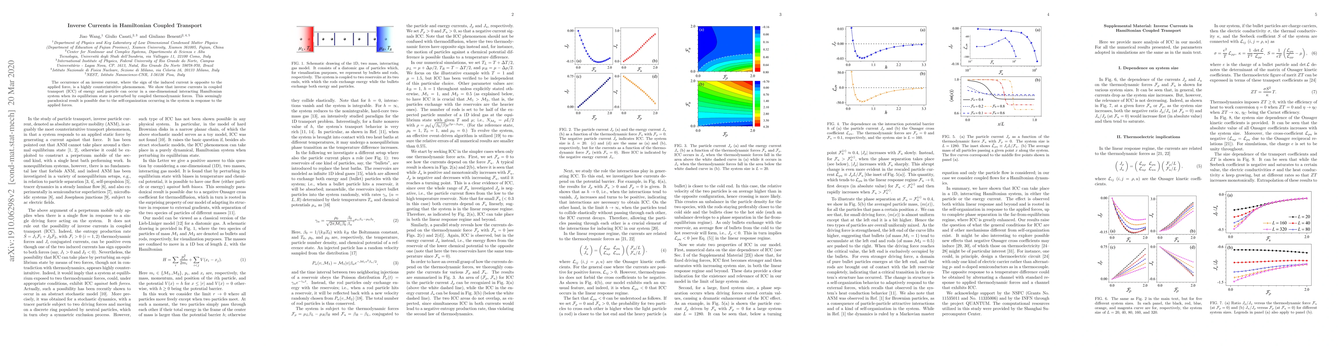 The occurrence of an inverse current, where the sign of the induced current is opposite to the applied force, is a highly counterintuitive phenomenon. We show that inverse currents in coupled transport (ICC) of energy and particle can occur in a one-dimensional interacting Hamiltonian system when its equilibrium state is perturbed by coupled thermodynamic forces. This seemingly paradoxical result is possible due to the self-organization occurring in the system in response to the applied forces.