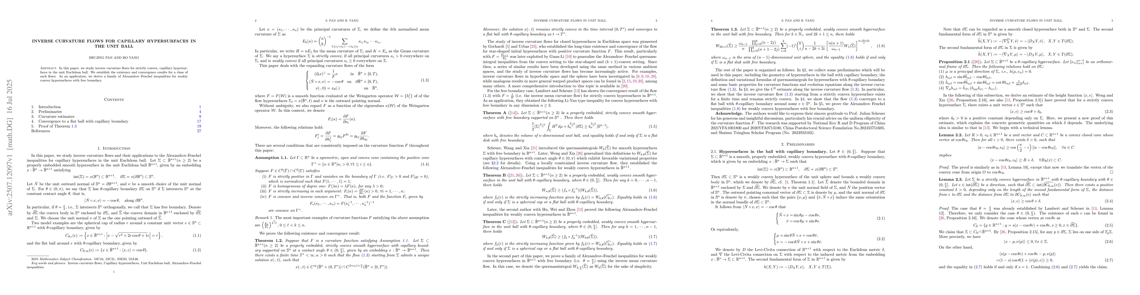 In this paper, we study inverse curvature flows for strictly convex, capillary hypersurfaces in the unit Euclidean ball. We establish the existence and convergence results for a class of such flows. As an application, we derive a family of Alexandrov Fenchel inequalities for weakly convex hypersurfaces with free boundary.