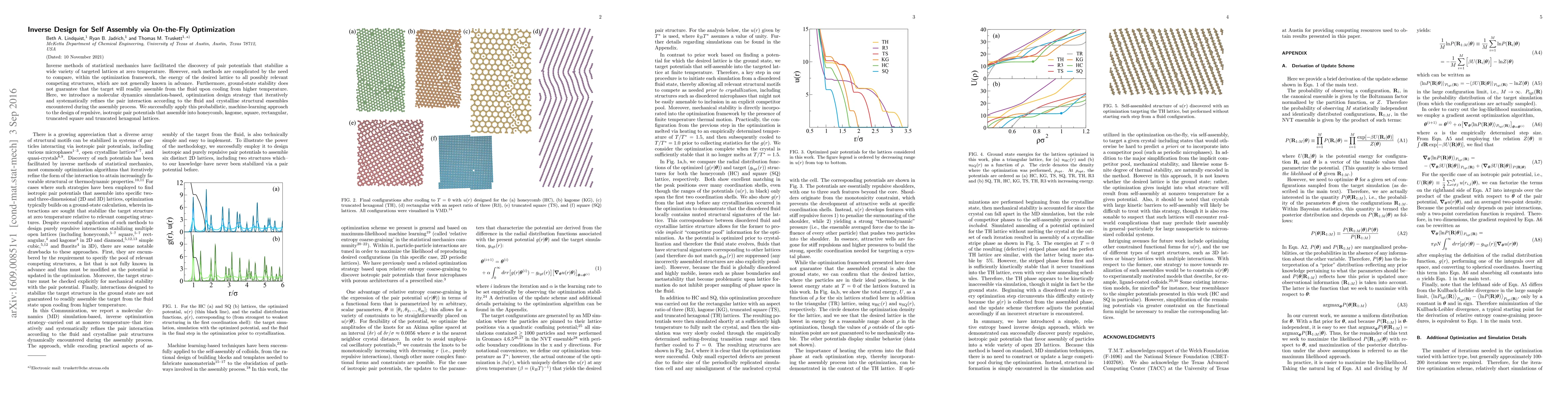 This paper presents an optimization-based inverse design method using molecular dynamics simulations to iteratively refine pair potentials for self-assembly into various lattices. The approach successfully designs repulsive potentials that enable the formation of several targeted crystalline structures from fluid states.