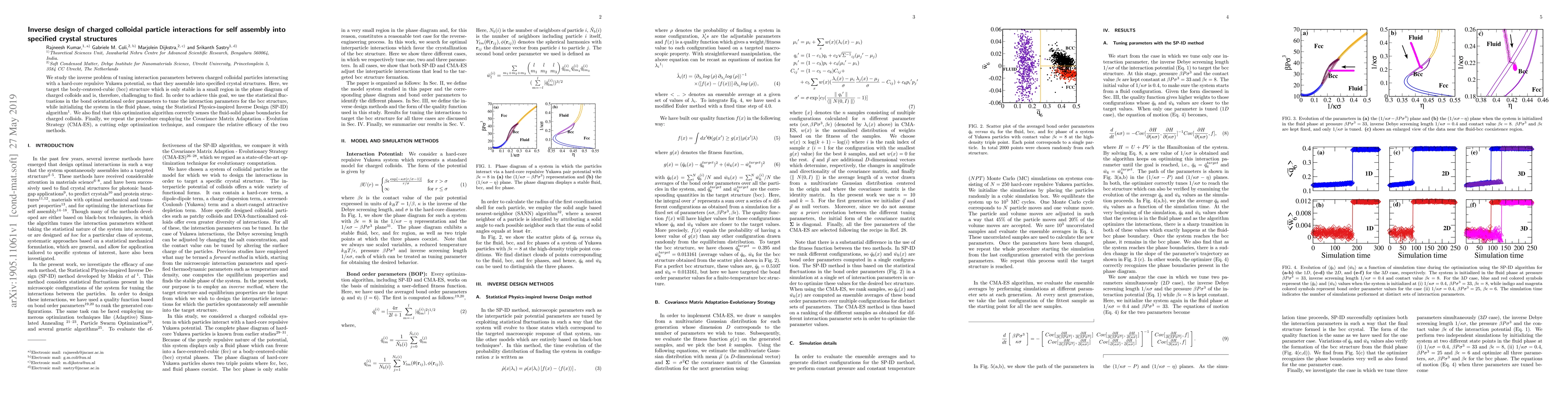 Researchers developed an algorithm to design charged colloidal particles that self-assemble into specific crystal structures, such as the body-centered-cubic (bcc) structure, using statistical fluctuations and optimization techniques.