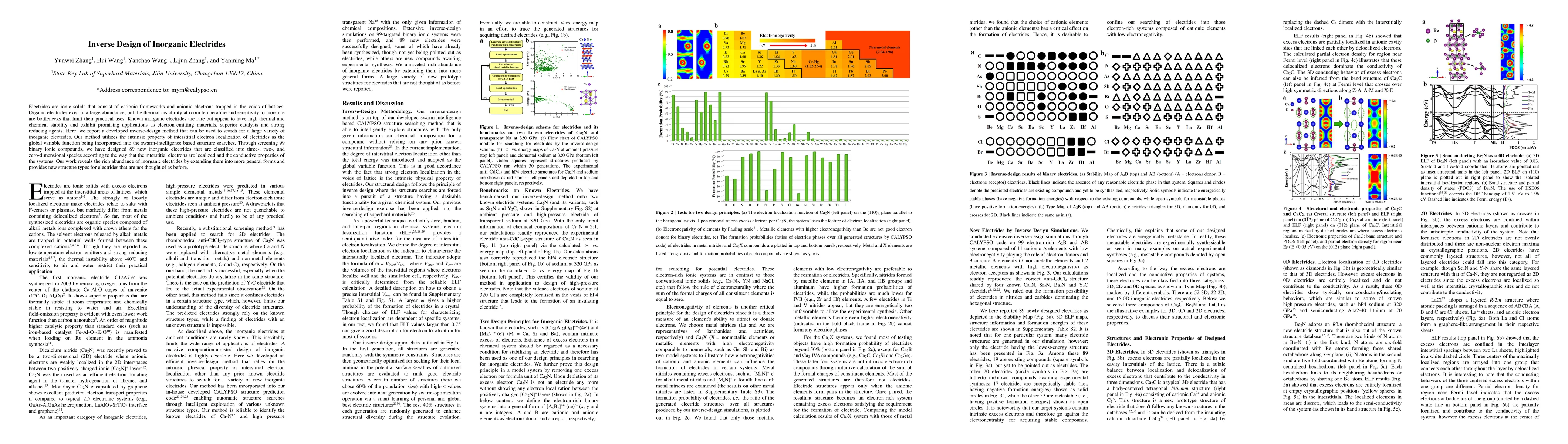 Electrides are ionic solids that consist of cationic frameworks and anionic electrons trapped in the voids of lattices. Organic electrides exist in a large abundance, but the thermal instability at room temperature and sensitivity to moisture are bottlenecks that limit their practical uses. Known inorganic electrides are rare but appear to have high thermal and chemical stability and exhibit promising applications as electron-emitting materials, superior catalysts and strong reducing agents. Here, we report a developed inverse-design method that can be used to search for a large variety of inorganic electrides. Our method utilizes the intrinsic property of interstitial electron localization of electrides as the global variable function being incorporated into the swarm-intelligence based structure searches. Through screening 99 binary ionic compounds, we have designed 89 new inorganic electrides that are classified into three-, two-, and zero-dimensional species according to the way that the interstitial electrons are localized and the conductive properties of the systems. Our work reveals the rich abundance of inorganic electrides by extending them into more general forms and provides new structure types for electrides that are not thought of as before.