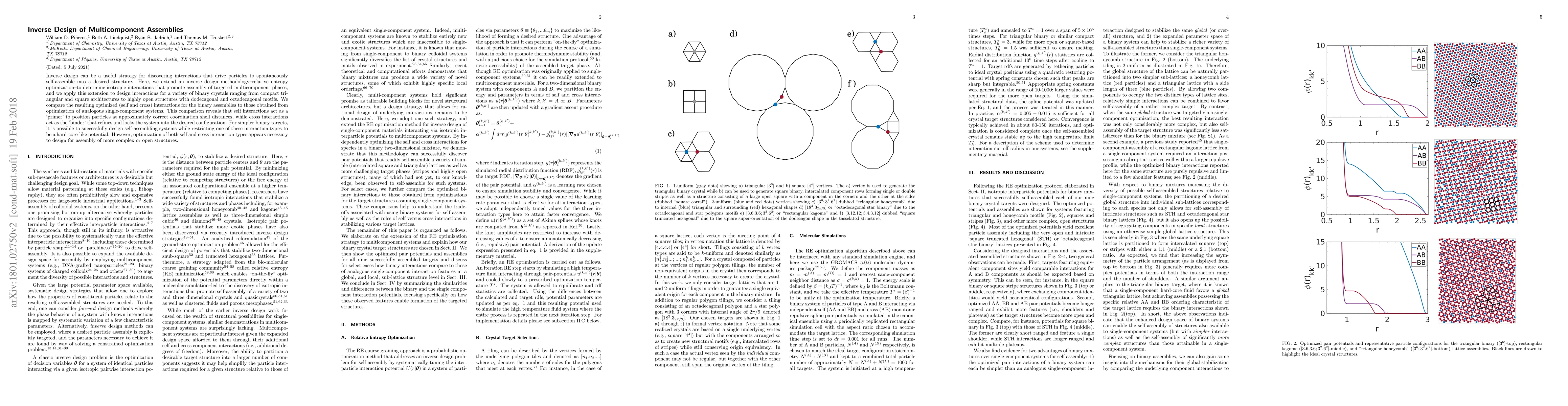 Researchers developed a method to design multicomponent assemblies using inverse design, finding that self interactions guide particles into correct positions while cross interactions refine the structure. This approach was successful for simpler targets but required optimizing both types of interactions for more complex systems.