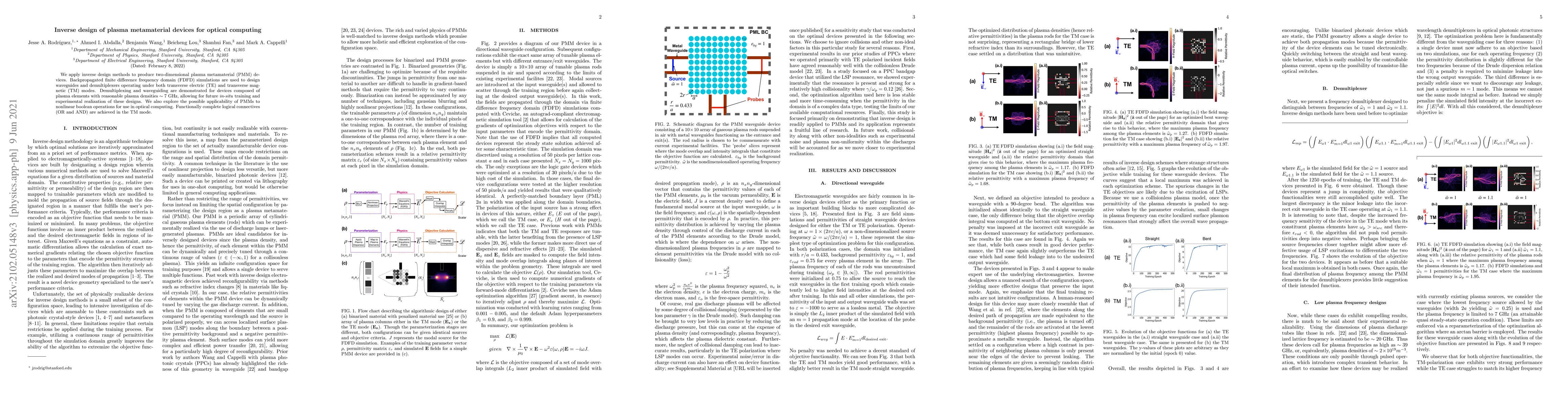 Researchers used inverse design to create plasma metamaterial devices for optical computing, achieving functional complete logical connectives like OR and AND operations. These devices operate at ~7 GHz frequencies, enabling potential future experimental realization.