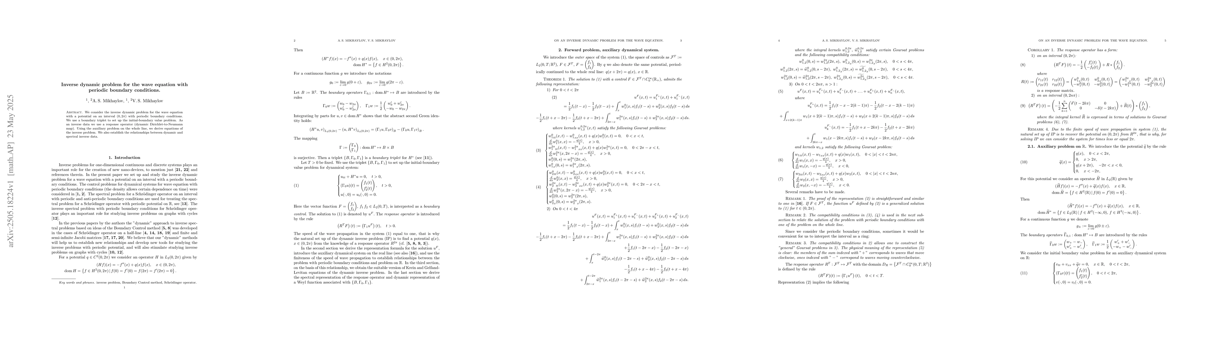 This work contributes to the understanding of inverse problems for wave equations with periodic boundary conditions, which have applications in various fields such as physics, engineering, and mathematical modeling.