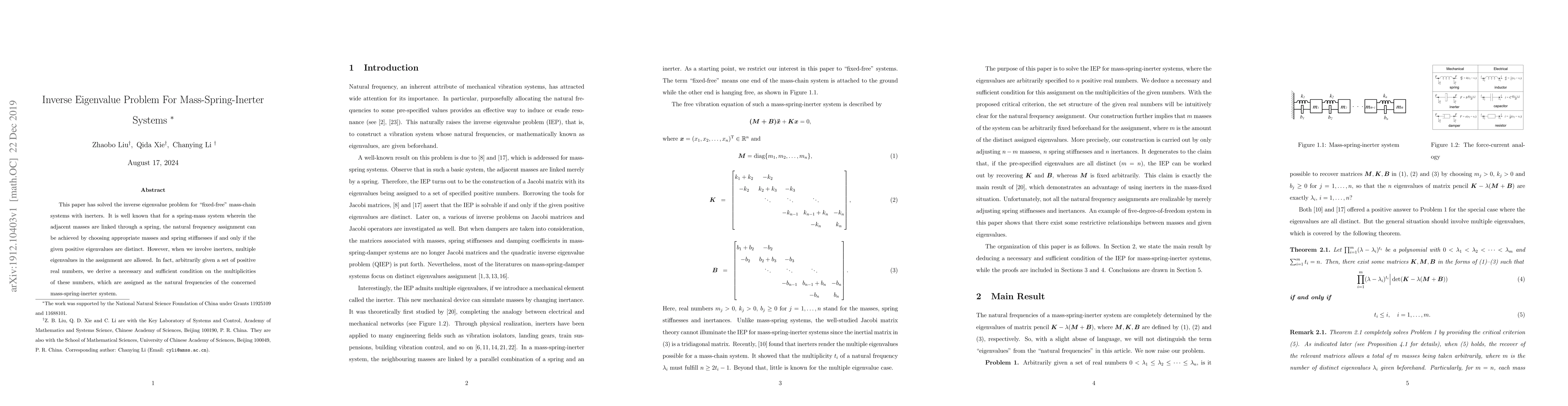 A novel inverse problem formulation was developed, which incorporates both mass-damper-spring system parameters and natural frequencies.