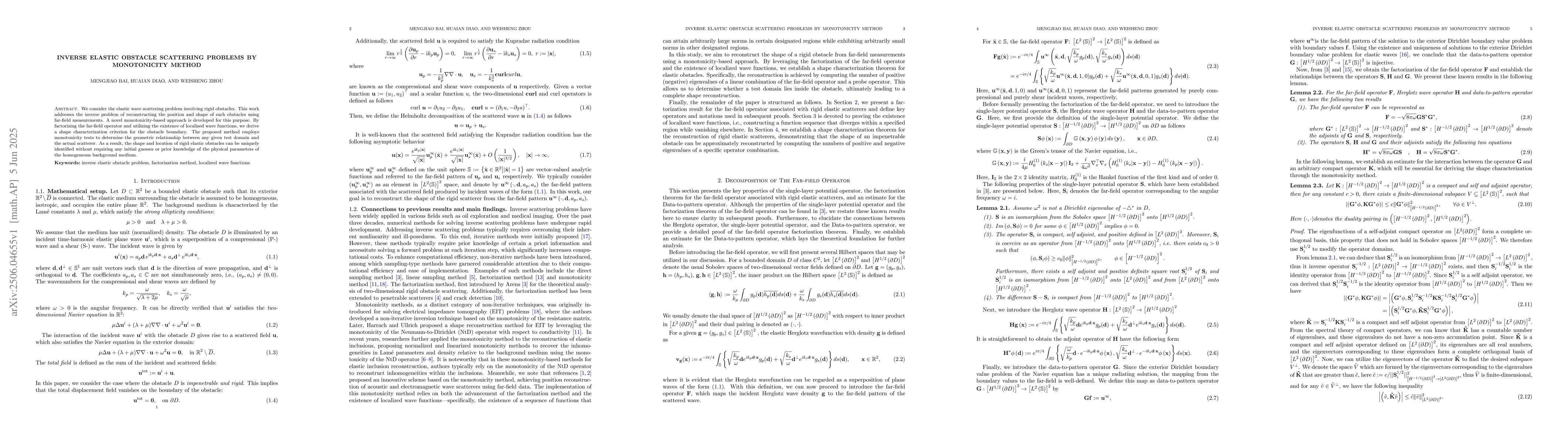 The paper presents a monotonicity test-based method for shape characterization of elastic obstacle scatterers, enabling unique identification of their position and shape from far-field measurements.