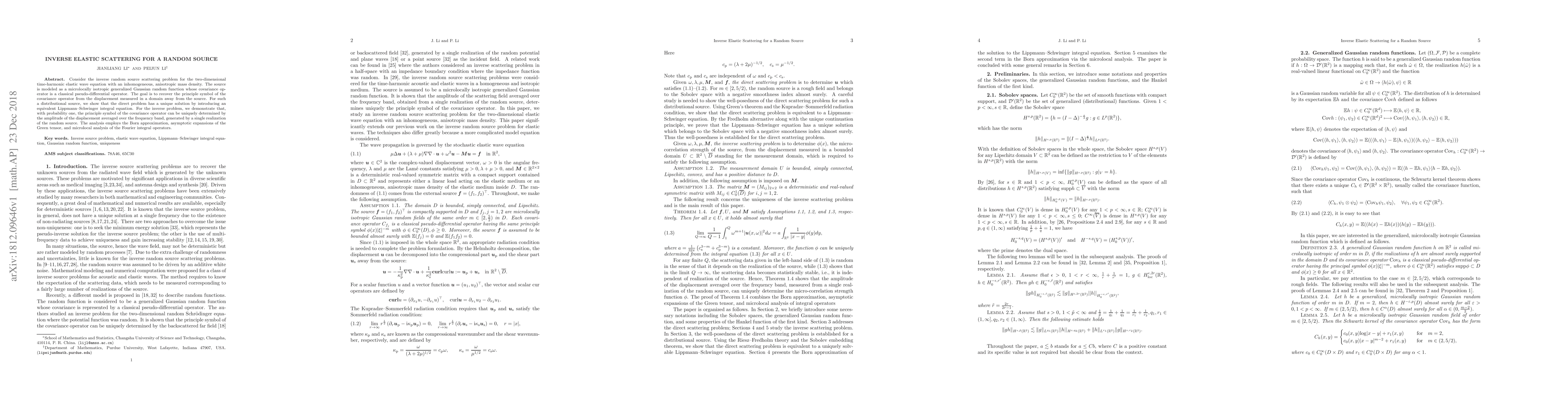 This paper tackles the inverse problem of determining the principle symbol of a covariance operator from elastic wave scattering data generated by a random source, modeled as a generalized Gaussian function. It proves the uniqueness of the direct scattering problem and demonstrates the identification of the covariance operator's symbol using the amplitude of averaged displacement data.