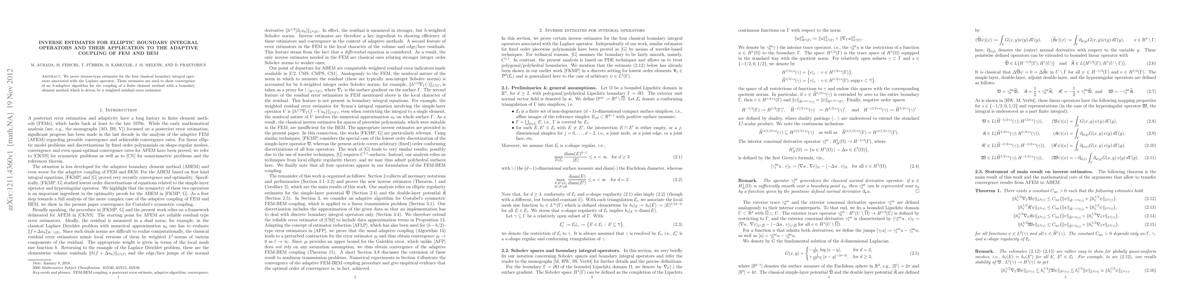 We prove inverse-type estimates for the four classical boundary integral operators associated with the Laplace operator. These estimates are used to show convergence of an h-adaptive algorithm for the coupling of a finite element method with a boundary element method which is driven by a weighted residual error estimator.