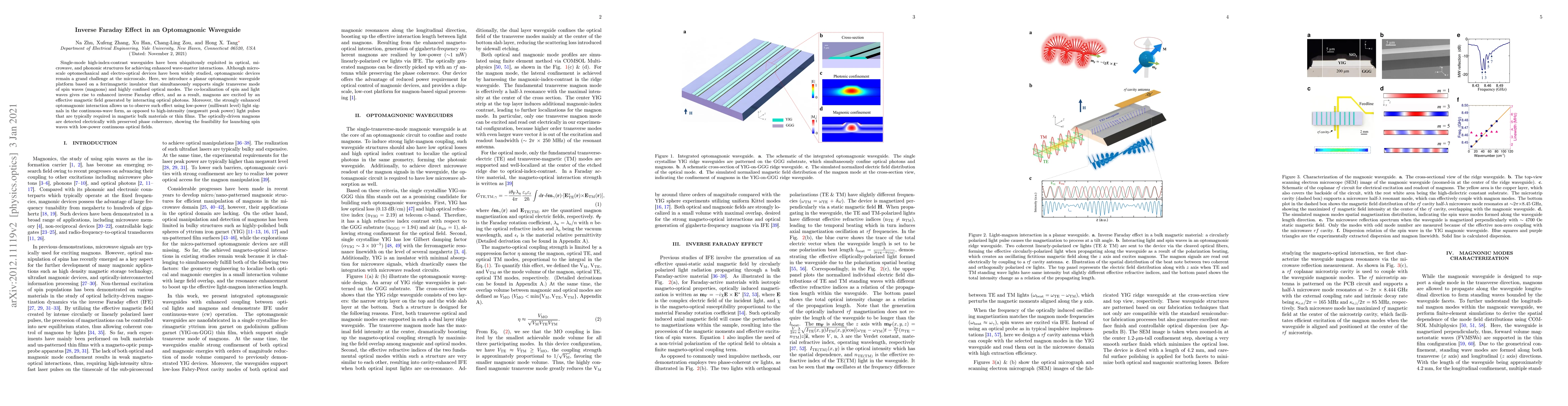 The research introduces a planar optomagnonic waveguide platform based on a ferrimagnetic insulator, supporting single transverse mode of spin waves (magnons) and highly confined optical modes. This co-localization of spin and light waves enhances the inverse Faraday effect, allowing for the excitation of magnons using low-power (milliwatt level) continuous-wave light signals.