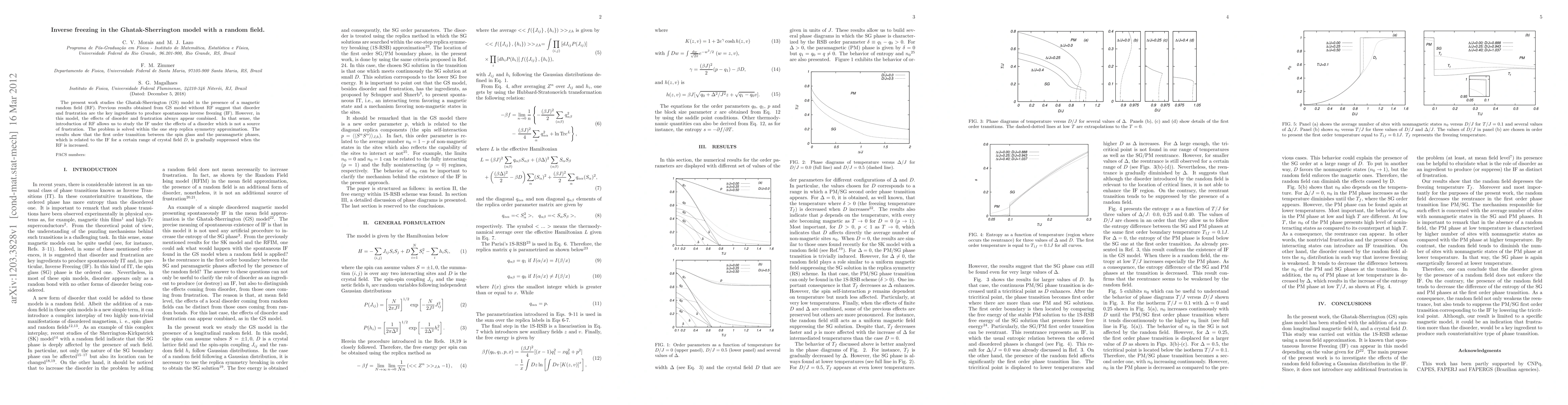 The Ghatak-Sherrington model with a random field shows that increasing the field suppresses the first-order transition between spin glass and paramagnetic phases, which is related to inverse freezing in a certain range of crystal field D.