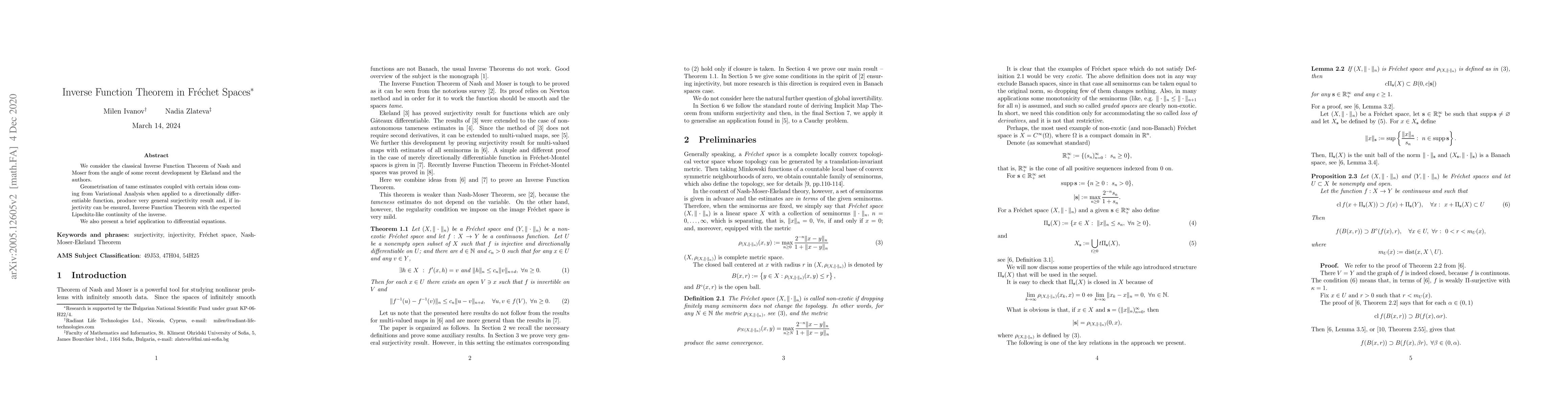 We consider the classical Inverse Function Theorem of Nash and Moser from the angle of some recent development by Ekeland and the authors. Geometrisation of tame estimates coupled with certain ideas coming from Variational Analysis when applied to a directionally differentiable function, produce very general surjectivity result and, if injectivity can be ensured, Inverse Function Theorem with the expected Lipschitz-like continuity of the inverse. We also present a brief application to differential equations.