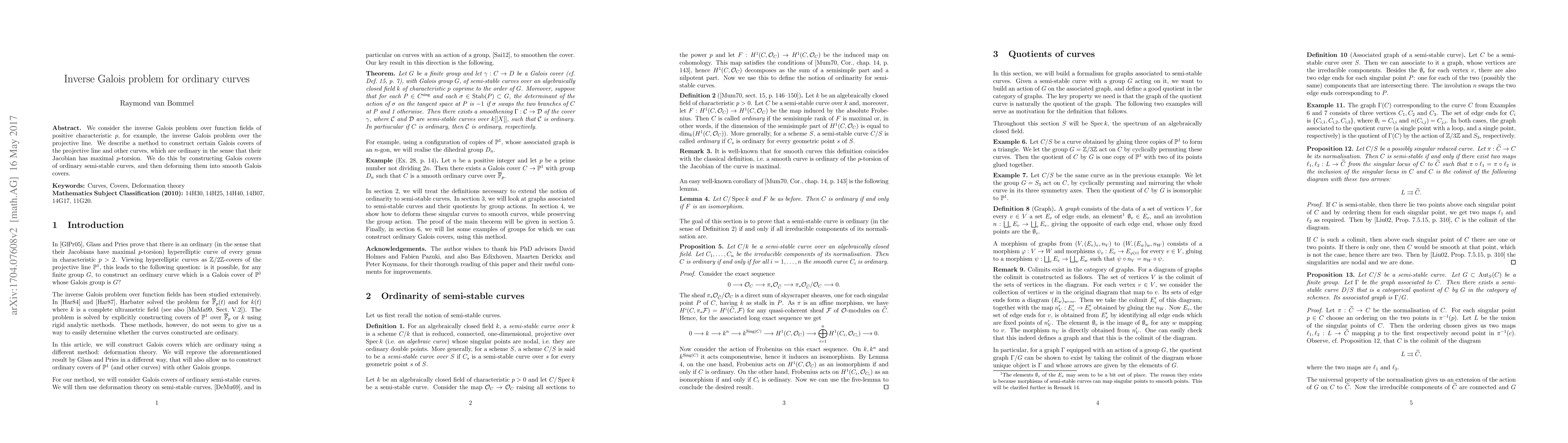 This paper explores the inverse Galois problem over function fields with positive characteristic, focusing on constructing Galois covers of ordinary curves where the Jacobian has maximal p-torsion. The method involves creating Galois covers of ordinary semi-stable curves and deforming them into smooth Galois covers.