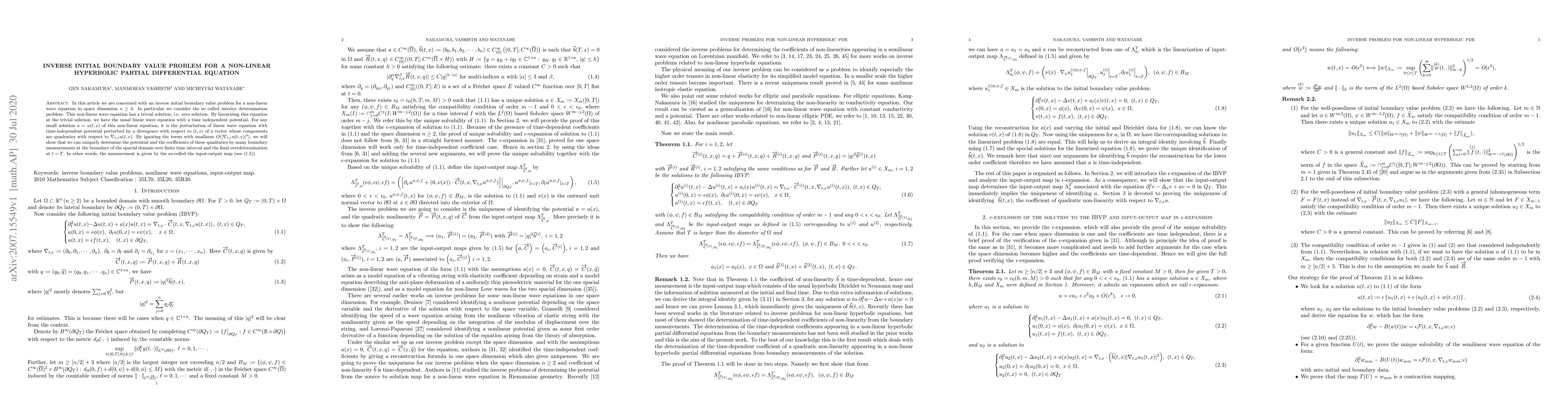 This paper addresses an inverse initial boundary value problem for a non-linear wave equation, focusing on determining the potential and quadratic coefficients from boundary measurements. By linearizing the equation and ignoring higher-order terms, the authors demonstrate unique determination of these parameters using boundary data over a finite time interval and final overdetermination at $t=T$.