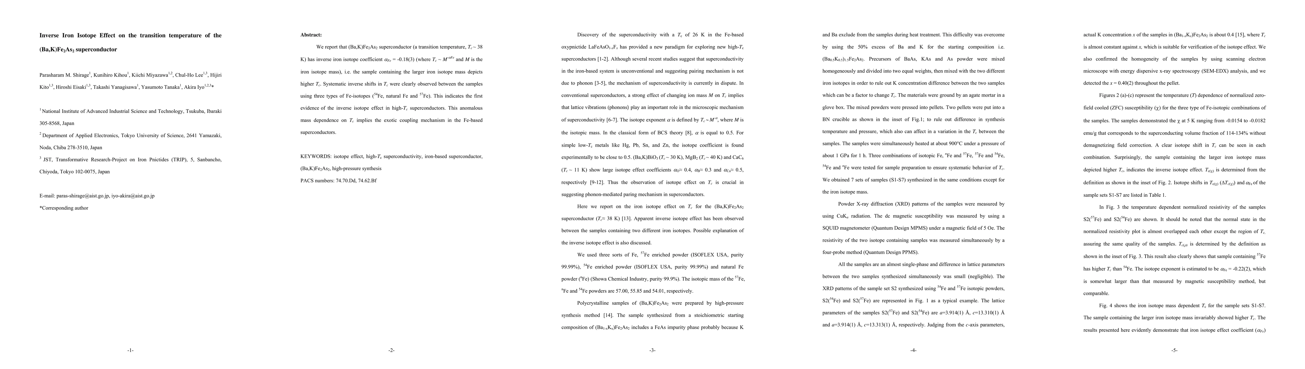 This study reveals an inverse iron isotope effect in the (Ba,K)Fe2As2 superconductor, where higher Tc is observed with heavier Fe isotopes, contrary to the typical direct effect. This finding suggests an unconventional coupling mechanism influencing superconductivity.