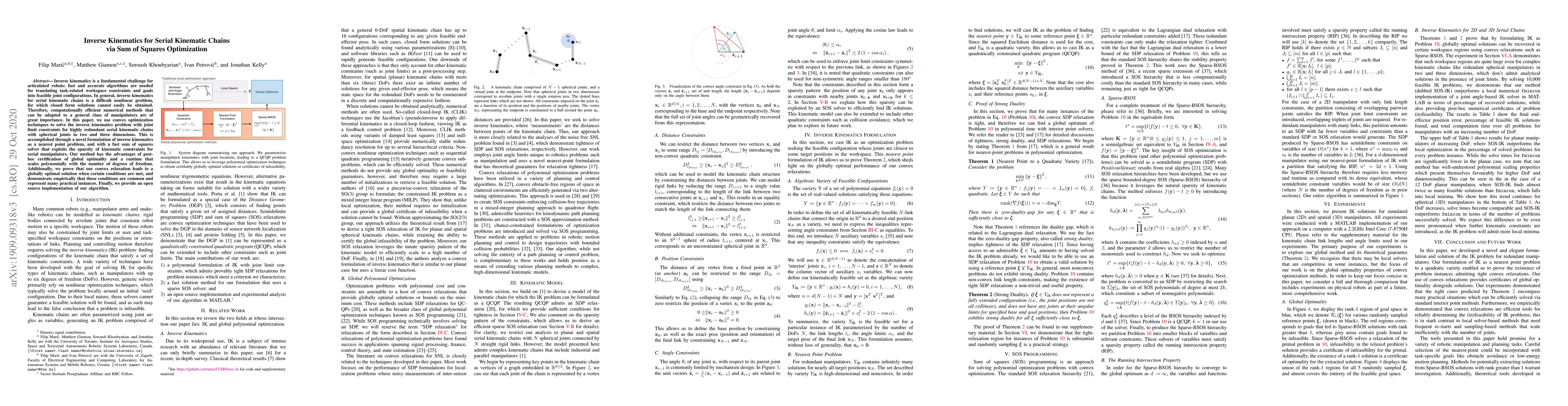 Researchers developed a novel method for solving inverse kinematics in serial kinematic chains using convex optimization techniques, achieving fast computation with polynomial scalability and global optimality certification.