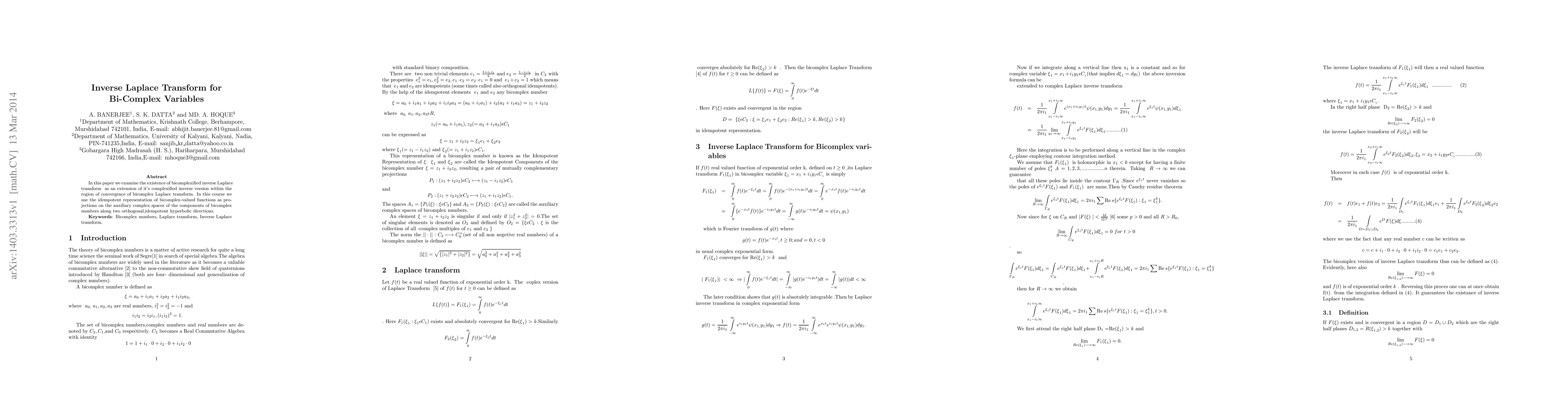This paper explores the existence of an inverse Laplace transform for bi-complex variables, extending the complex inverse Laplace transform. It utilizes the idempotent representation of bi-complex functions by projecting onto auxiliary complex spaces along orthogonal hyperbolic directions.