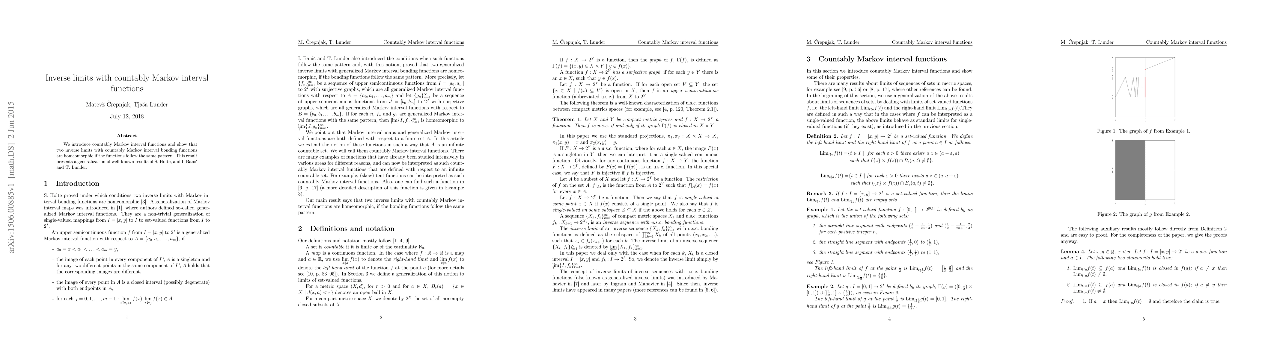 Summary: This paper introduces countably Markov interval functions and demonstrates that inverse limits with these functions are homeomorphic if they follow the same pattern, generalizing previous results by Holte, Bani\v{c}, and Lunder.