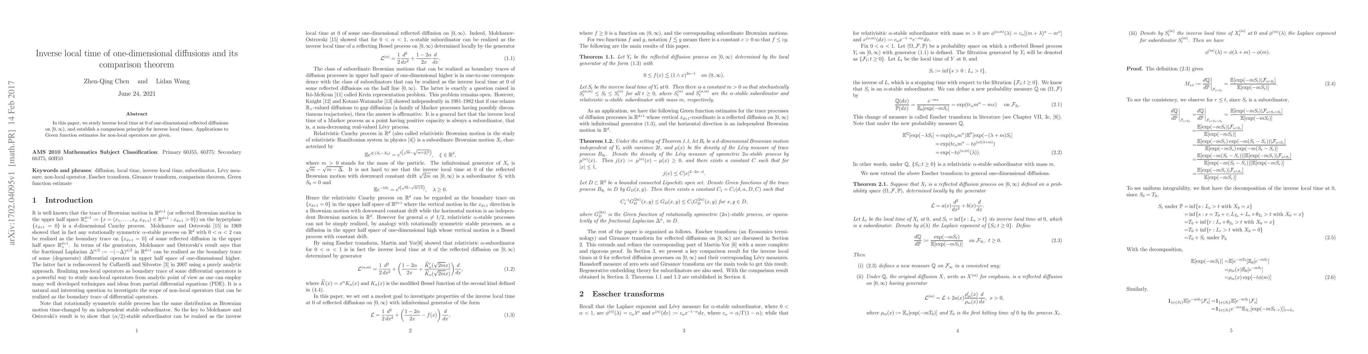 This paper investigates the inverse local time at 0 for one-dimensional reflected diffusions and establishes a comparison theorem for these inverse local times. It also applies these findings to estimate Green functions for non-local operators.