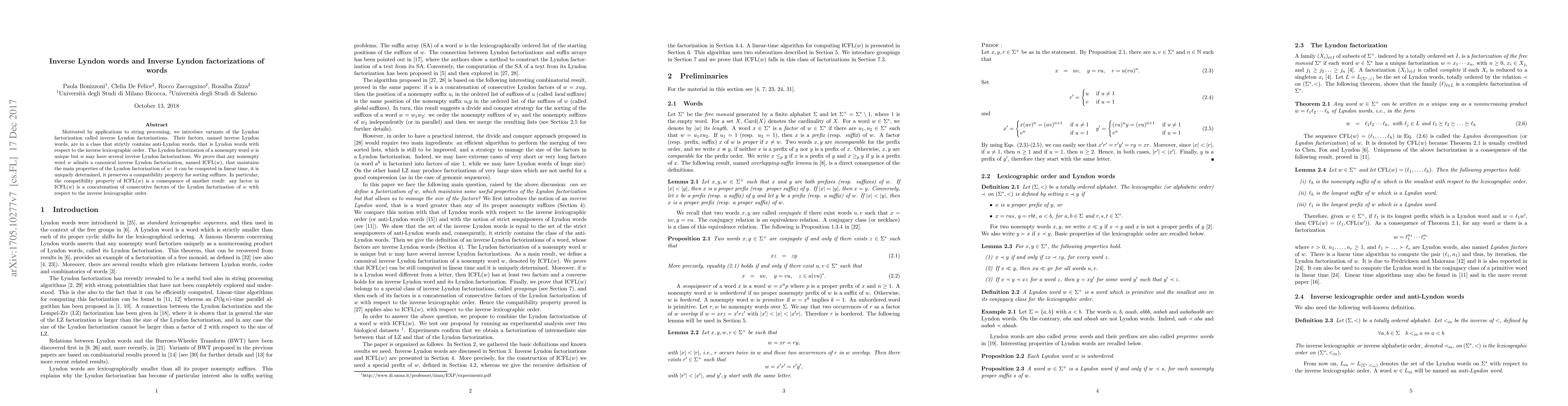 Motivated by applications to string processing, we introduce variants of the Lyndon factorization called inverse Lyndon factorizations. Their factors, named inverse Lyndon words, are in a class that strictly contains anti-Lyndon words, that is Lyndon words with respect to the inverse lexicographic order. The Lyndon factorization of a nonempty word w is unique but w may have several inverse Lyndon factorizations. We prove that any nonempty word w admits a canonical inverse Lyndon factorization, named ICFL(w), that maintains the main properties of the Lyndon factorization of w: it can be computed in linear time, it is uniquely determined, it preserves a compatibility property for sorting suffixes. In particular, the compatibility property of ICFL(w) is a consequence of another result: any factor in ICFL(w) is a concatenation of consecutive factors of the Lyndon factorization of w with respect to the inverse lexicographic order.