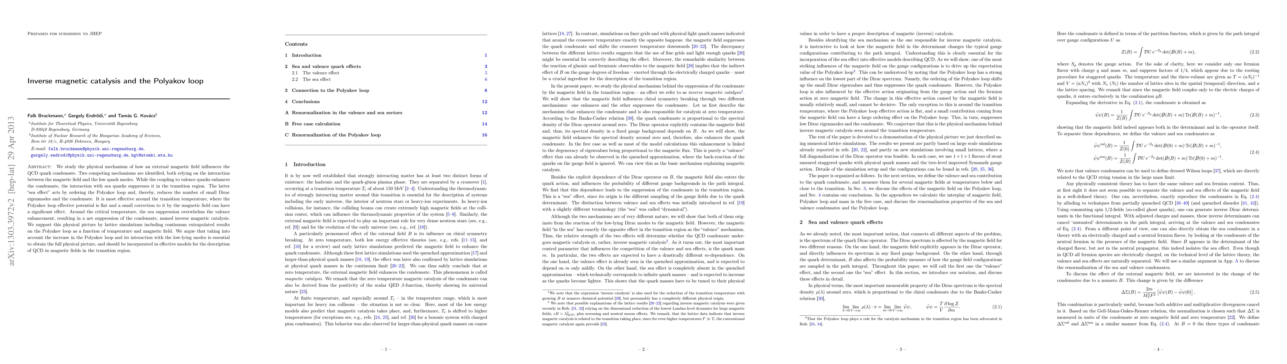 We study the physical mechanism of how an external magnetic field influences the QCD quark condensate. Two competing mechanisms are identified, both relying on the interaction between the magnetic field and the low quark modes. While the coupling to valence quarks enhances the condensate, the interaction with sea quarks suppresses it in the transition region. The latter `sea effect' acts by ordering the Polyakov loop and, thereby, reduces the number of small Dirac eigenmodes and the condensate. It is most effective around the transition temperature, where the Polyakov loop effective potential is flat and a small correction to it by the magnetic field can have a significant effect. Around the critical temperature, the sea suppression overwhelms the valence enhancement, resulting in a net suppression of the condensate, named inverse magnetic catalysis. We support this physical picture by lattice simulations including continuum extrapolated results on the Polyakov loop as a function of temperature and magnetic field. We argue that taking into account the increase in the Polyakov loop and its interaction with the low-lying modes is essential to obtain the full physical picture, and should be incorporated in effective models for the description of QCD in magnetic fields in the transition region.
