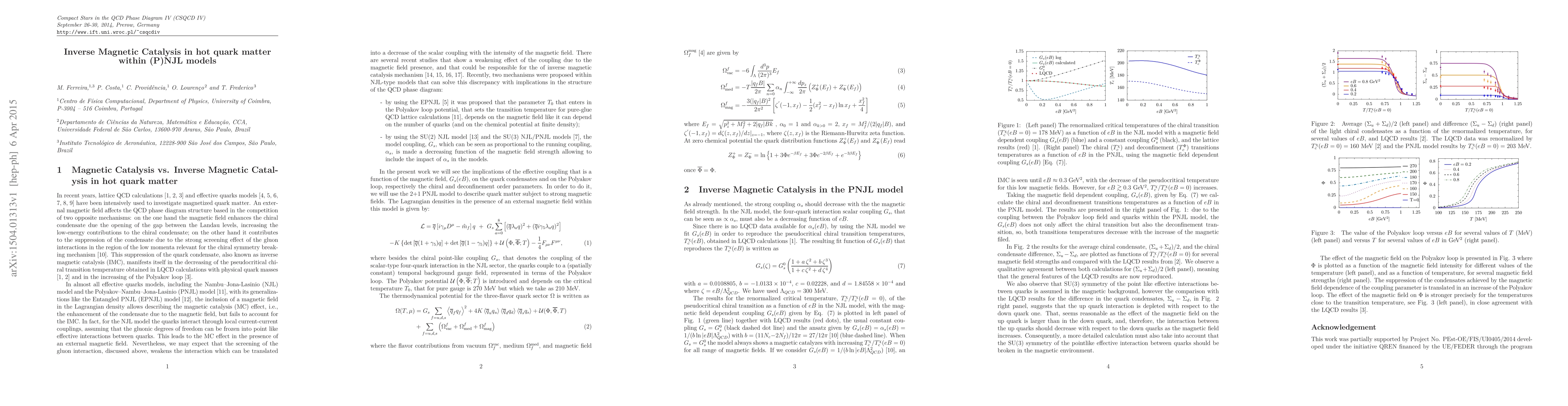 This paper explores inverse magnetic catalysis in hot quark matter using (P)NJL models, demonstrating how magnetic fields can suppress quark condensates near the transition region, opposite to the usual magnetic catalysis observed at low temperatures. Two approaches within these models successfully replicate both magnetic catalysis and its inverse effect.