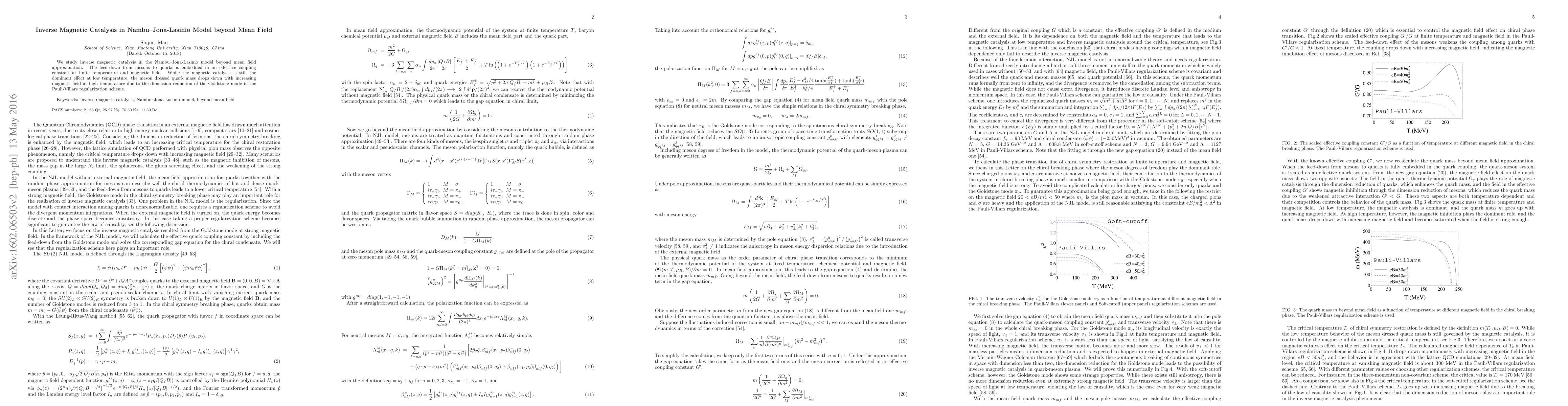 Summary: This study investigates inverse magnetic catalysis in the Nambu-Jona-Lasinio model beyond mean field approximation, revealing that while magnetic catalysis prevails at low temperatures, high temperatures and strong magnetic fields lead to a reduction in the dressed quark mass due to the dimensional reduction of the Goldstone mode.