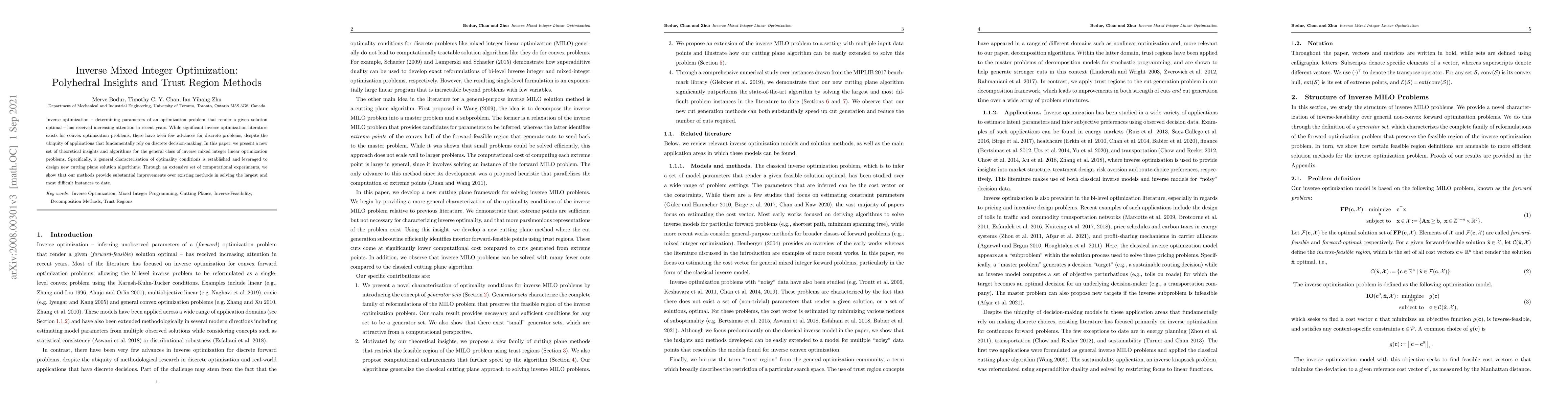 This paper introduces new theoretical insights and algorithms for inverse mixed integer linear optimization, establishing a general characterization of optimality conditions and leveraging it to develop cutting plane methods. Computational experiments demonstrate significant improvements over existing approaches for solving challenging instances.