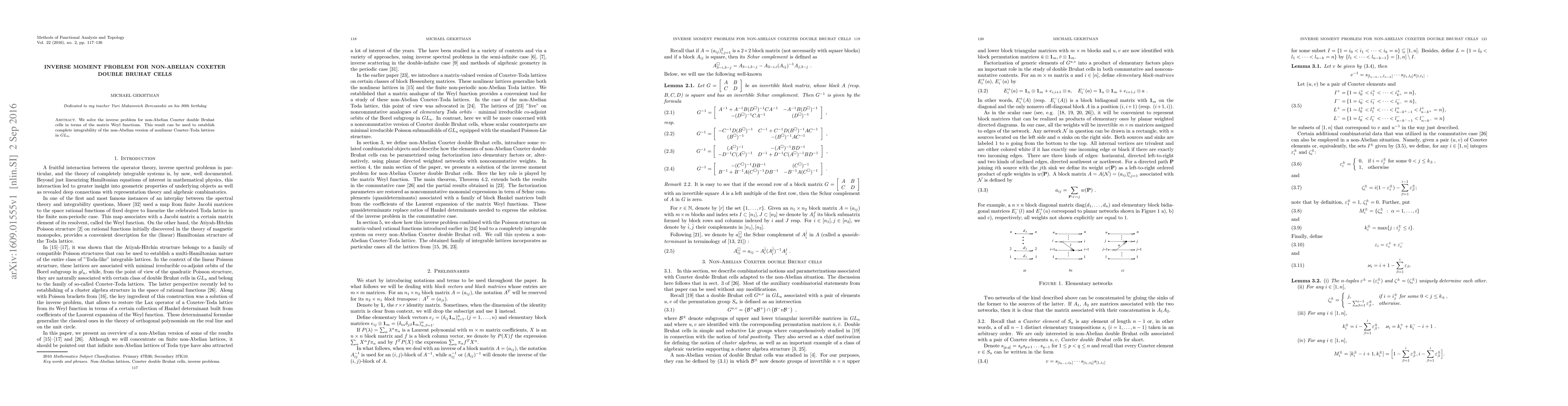 We solve the inverse problem for non-Abelian Coxeter double Bruhat cells in terms of the matrix Weyl functions. This result can be used to establish complete integrability of the non-Abelian version of nonlinear Coxeter-Toda lattices in $GL_n$.