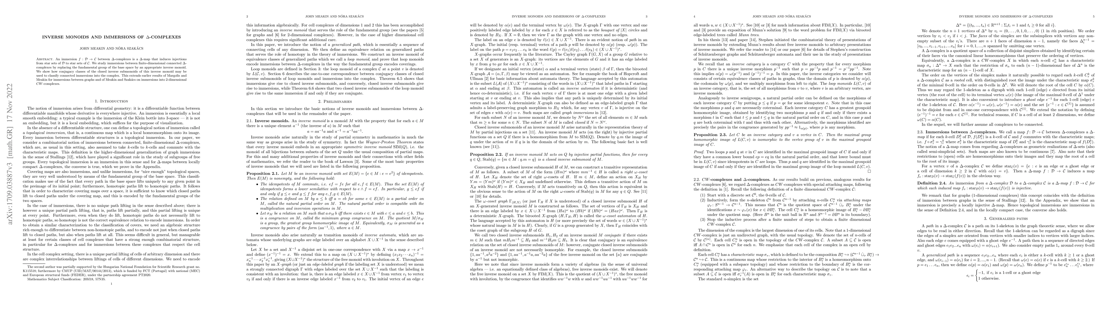 An immersion $f : {\mathcal D} \rightarrow \mathcal C$ between $\Delta$-complexes is a $\Delta$-map that induces injections from star sets of $\mathcal D$ to star sets of $\mathcal C$. We study immersions between finite-dimensional connected $\Delta$-complexes by replacing the fundamental group of the base space by an appropriate inverse monoid. We show how conjugacy classes of the closed inverse submonoids of this inverse monoid may be used to classify connected immersions into the complex. This extends earlier results of Margolis and Meakin for immersions between graphs and of Meakin and Szak\'acs on immersions into $2$-dimensional $CW$-complexes.