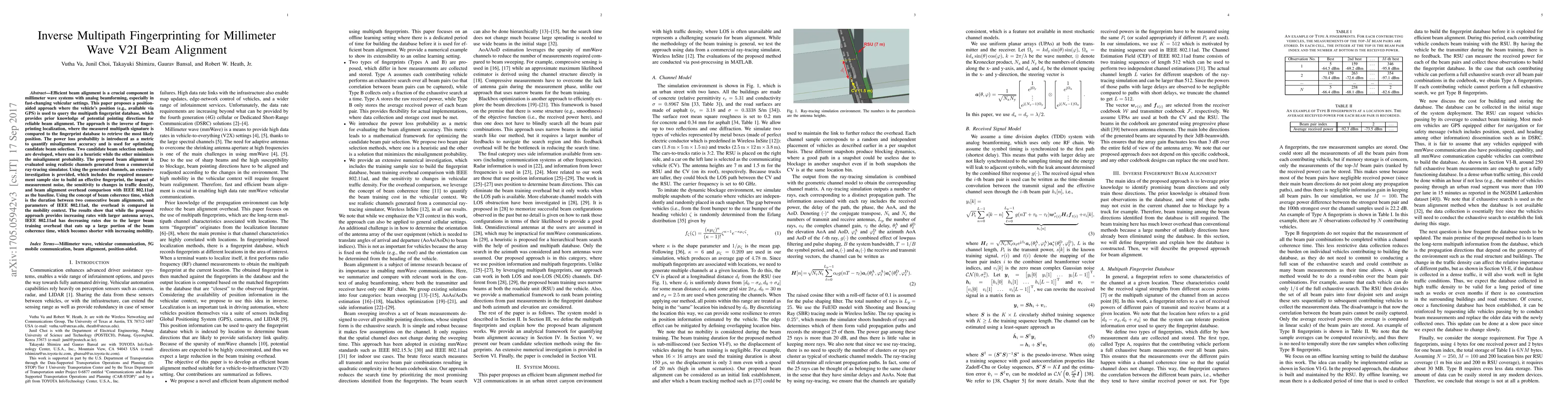 This paper proposes an inverse multipath fingerprinting method for beam alignment in millimeter wave vehicle-to-infrastructure (V2I) communication, leveraging the vehicle's position to query a multipath fingerprint database for optimal beam direction. The approach optimizes candidate beam selection based on the power loss probability metric, and is evaluated against IEEE 802.11ad, showing reduced overhead and better performance with higher mobility.