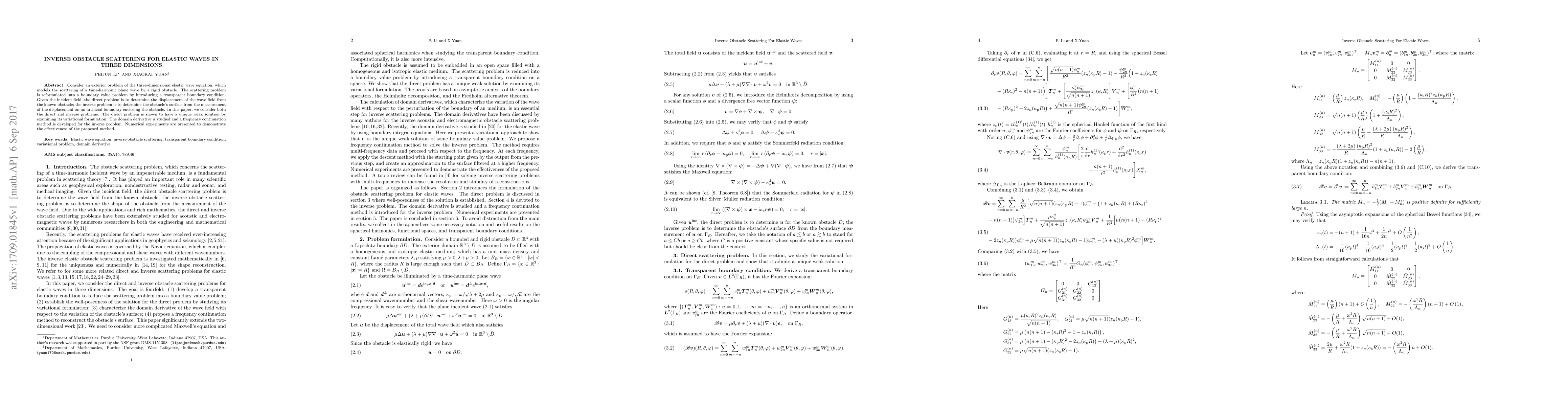 This paper investigates the direct and inverse scattering problems for three-dimensional elastic waves. It establishes a unique weak solution for the direct problem and develops a frequency continuation method for the inverse problem, supported by numerical experiments.