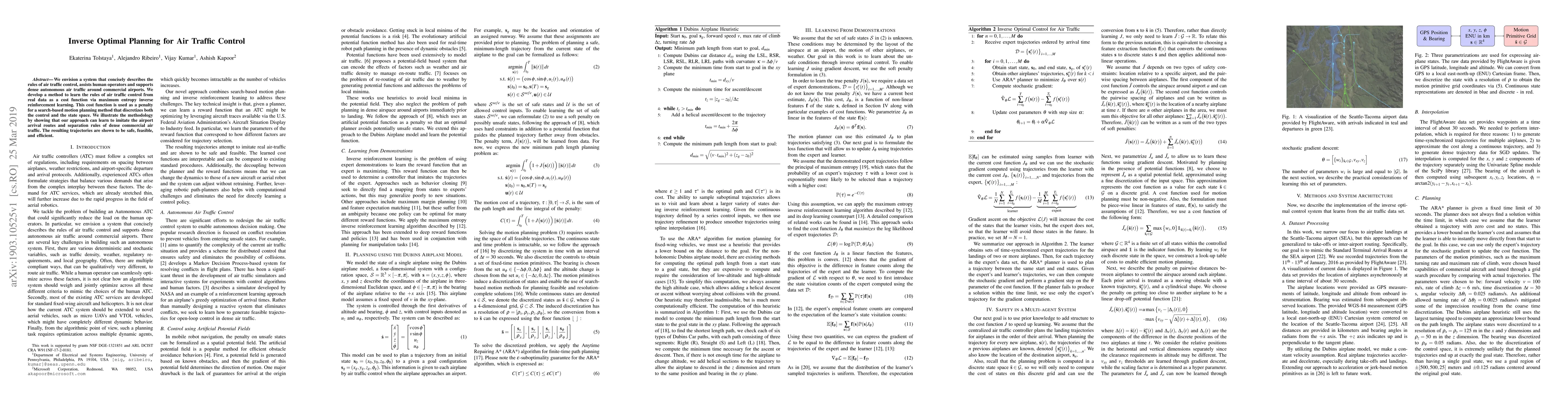 We envision a system that concisely describes the rules of air traffic control, assists human operators and supports dense autonomous air traffic around commercial airports. We develop a method to learn the rules of air traffic control from real data as a cost function via maximum entropy inverse reinforcement learning. This cost function is used as a penalty for a search-based motion planning method that discretizes both the control and the state space. We illustrate the methodology by showing that our approach can learn to imitate the airport arrival routes and separation rules of dense commercial air traffic. The resulting trajectories are shown to be safe, feasible, and efficient.