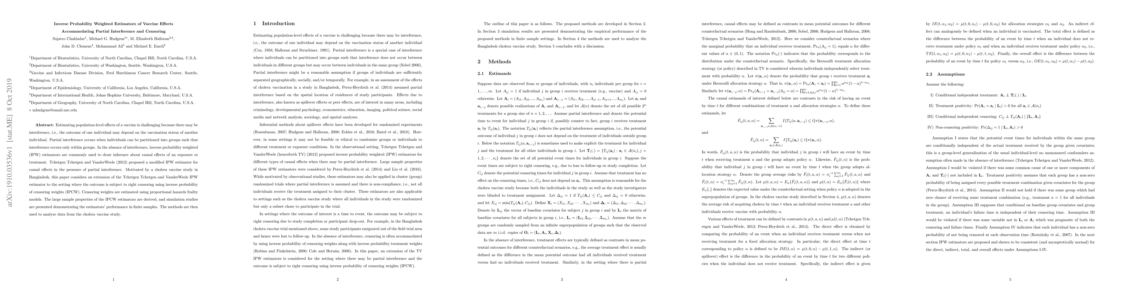 This paper extends inverse probability weighted estimators to account for partial interference and right censoring in vaccine effect estimation, proposing a modified estimator for causal inference in the presence of group-specific interference. Simulation studies and an analysis of a cholera vaccine study in Bangladesh demonstrate the method's effectiveness.