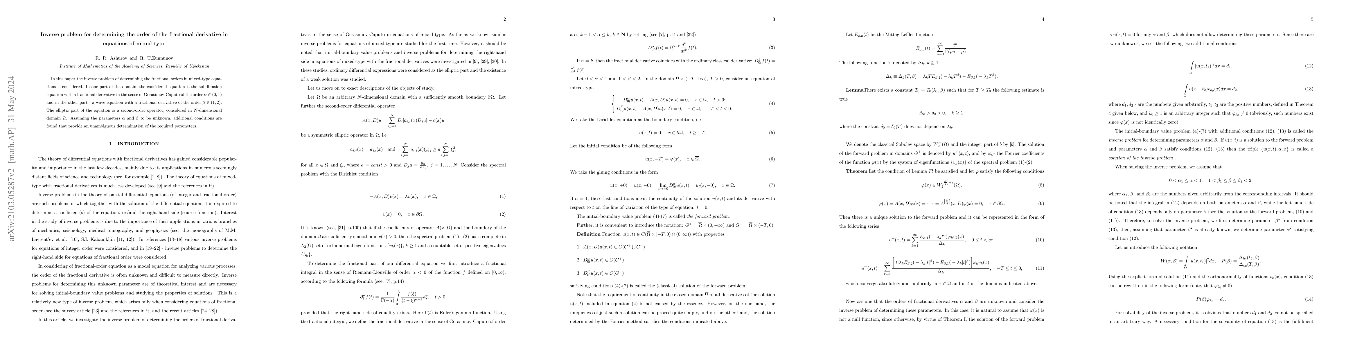 This paper tackles the inverse problem of identifying the fractional derivative orders in mixed-type equations, distinguishing between a subdiffusion equation with a Caputo-Gerasimov fractional derivative (0 < a < 1) and a wave equation with a higher-order fractional derivative (1 < b < 2), in different parts of an N-dimensional domain. It finds additional conditions that ensure the unambiguous determination of the unknown parameters a and b.