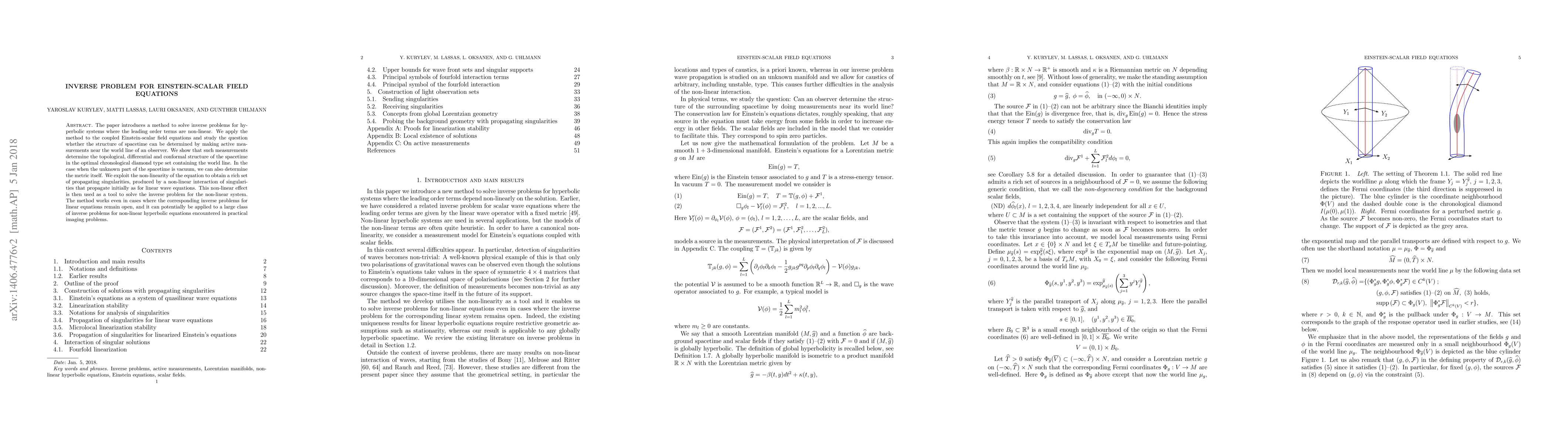 This paper develops a method to solve inverse problems for non-linear hyperbolic systems, applying it to the Einstein-scalar field equations to determine spacetime structure via measurements near an observer's world line. The method leverages non-linear interactions to identify the topological, differential, and conformal structure, and even the metric in vacuum regions.