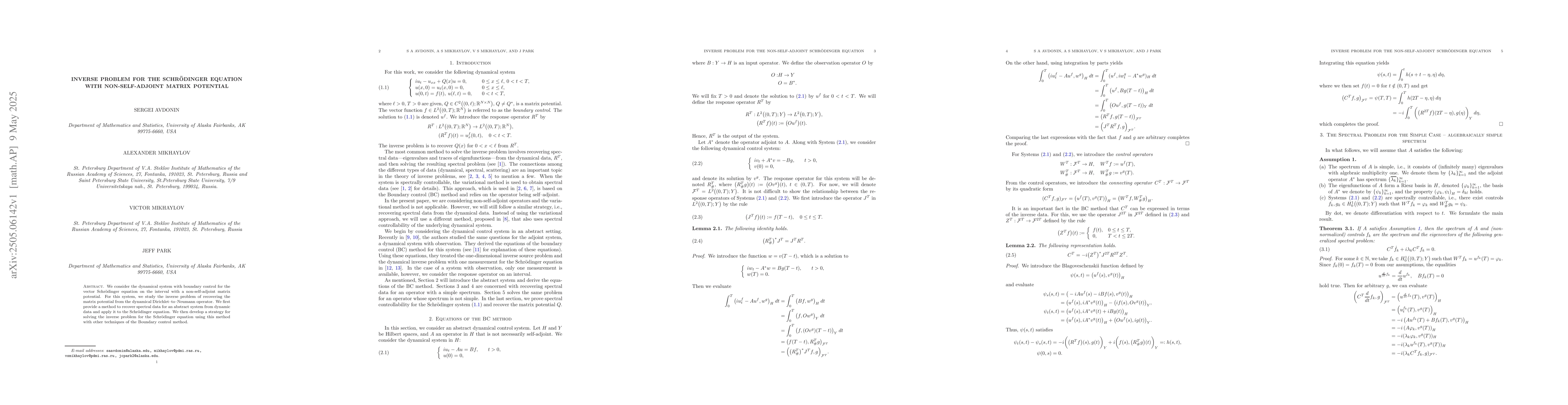The research combines spectral data recovery methods with boundary control theory for non-self-adjoint matrix potentials in the Schrödinger equation, offering a unique contribution to inverse problems in quantum mechanics.