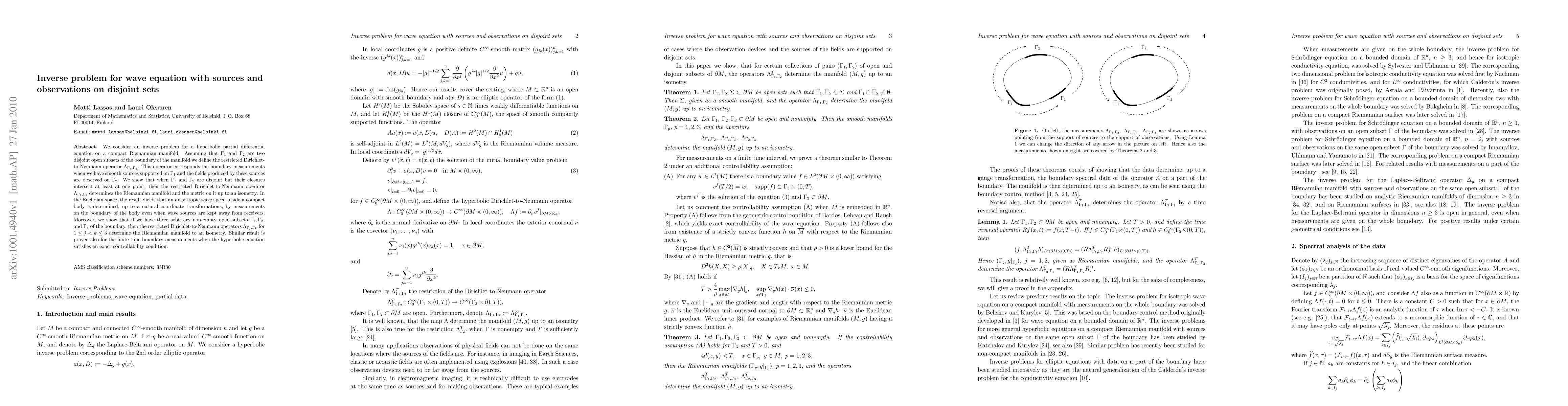 Researchers prove that boundary measurements of a wave equation can uniquely determine a compact Riemannian manifold and its metric up to isometry, even when sources and receivers are on disjoint parts of the boundary.