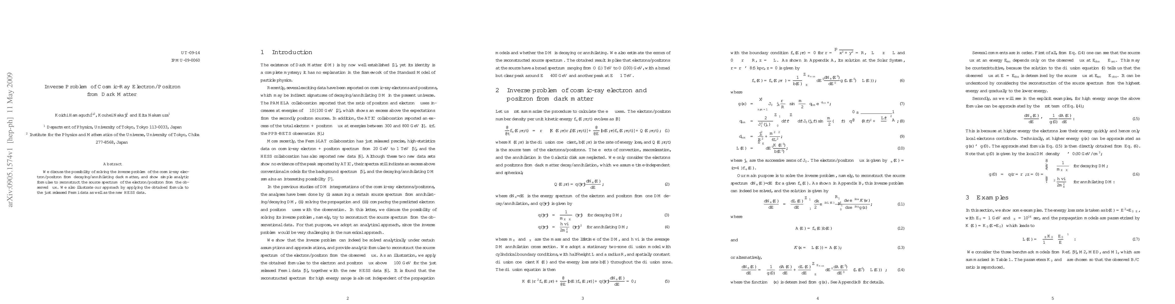 This paper explores the inverse problem of cosmic-ray electron/positron origins from dark matter, presenting analytic methods to reconstruct the source spectrum from observed fluxes. It demonstrates the approach using recent Fermi and HESS data.